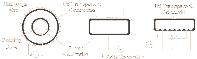由于DBD在產(chǎn)生的放電過程中會產(chǎn)生大量的自由基和準分子,如OH、O、NO等,它們的化學性質(zhì)非?;钴S,很容易和其它原子、分子或其它自由基發(fā)生反應(yīng)而形成穩(wěn)定的原子或分子。因而可利用這些自由基的特性來處理VOCs,在環(huán)保方面也有很重要的價值。另外,利用DBD可制成準分子輻射光源,它們能發(fā)射窄帶輻射,其波長覆蓋紅外、紫外和可見光等光譜區(qū),且不產(chǎn)生輻射的自吸收,它是一種高效率、高強度的單色光源。在DBD電極結(jié)構(gòu)中,采用管線式的電極結(jié)構(gòu)還可制成臭氧O3發(fā)生器?,F(xiàn)在人們已越來越重視對DBD的研究與應(yīng)用。
