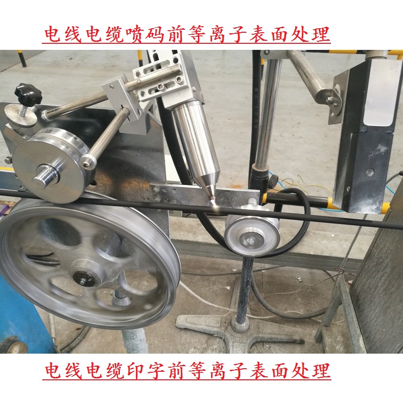 當我們接到客戶的信息,提到是否有辦法讓PE電線上的字跡,不容易擦掉!由于線纜的特殊性,因此我們帶上我們的GM-2000低溫等離子表面處理機,到現場安裝在印字機前,對PE電線進行印字前表面處理。