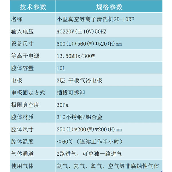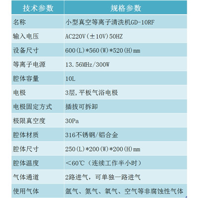 10L射頻真空等離子清洗機_實驗室等離子設備_科研機構等離子表面處理機GD-10RF 技術參數